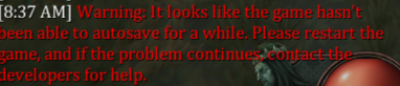 When you see this message don't freak out just move your char more and get the book and then the steak (so it wont pop up anymore) when finished move to a different area, teleporting seems to work and your game will auto save. I did test this feature and as long as I moved after my save had no issues.