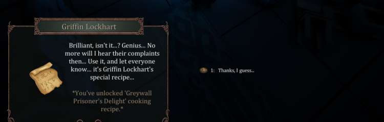 Can be unlocked when interacting with Griffin Lockhart, the Prison Chef.